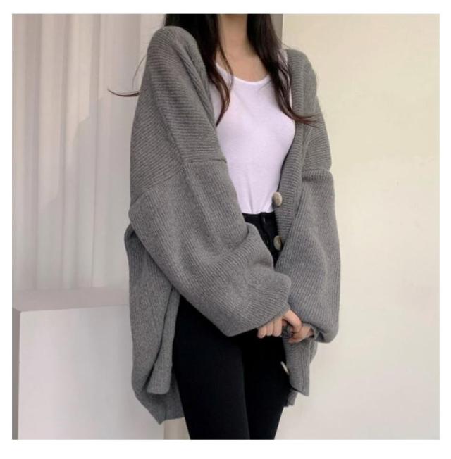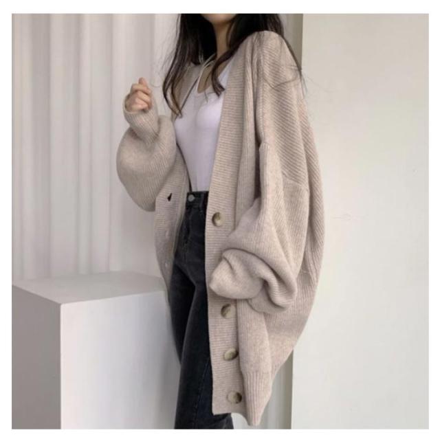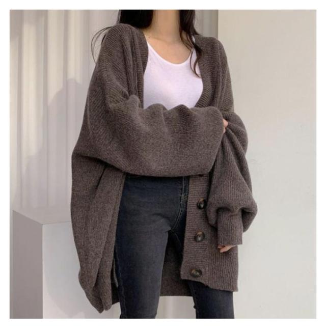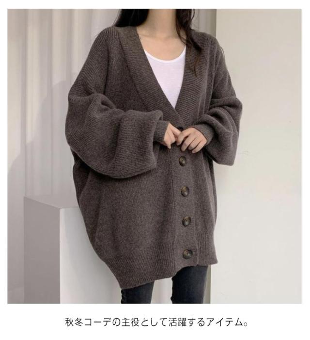 厚手 ボリュームスリーブ 冬 レディース ニットカーディガン カーディガン 秋 Vネック ロング 防寒 あたっか ロングカーディガン リブ編み 無地 オーバーサイズ 羽織り アウター ミドル丈 体型カバー 韓国風 カジュアル シンプル 大人 ニット