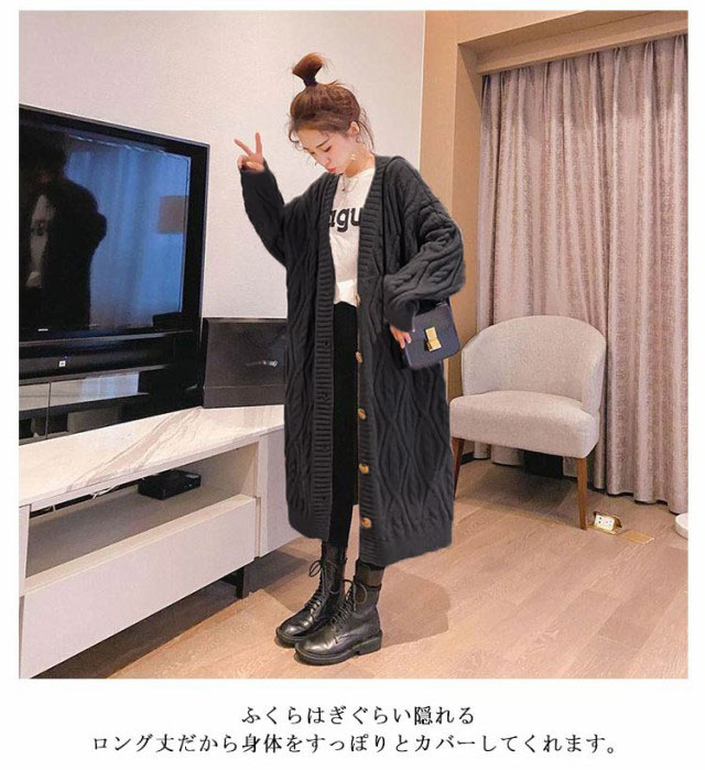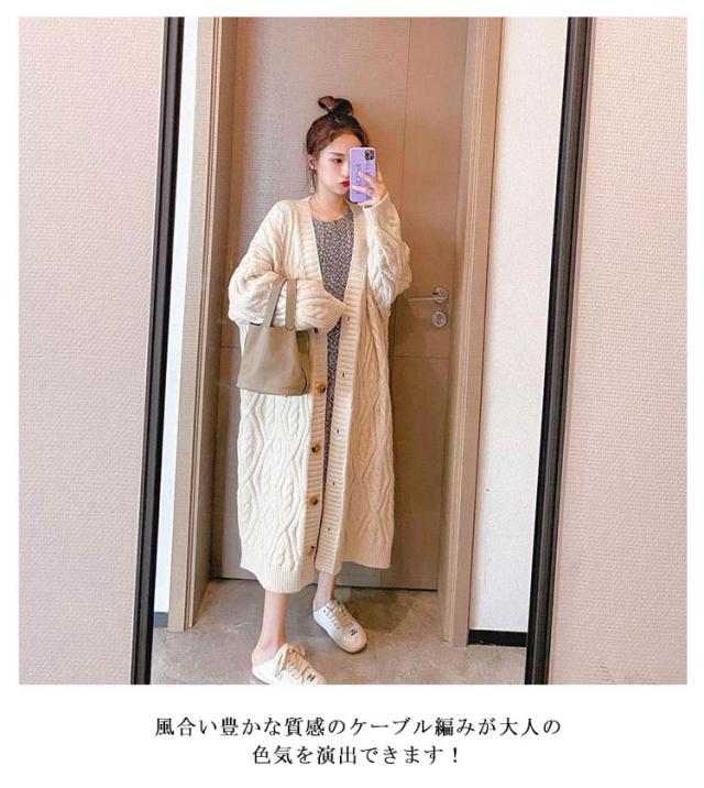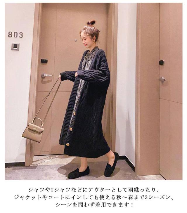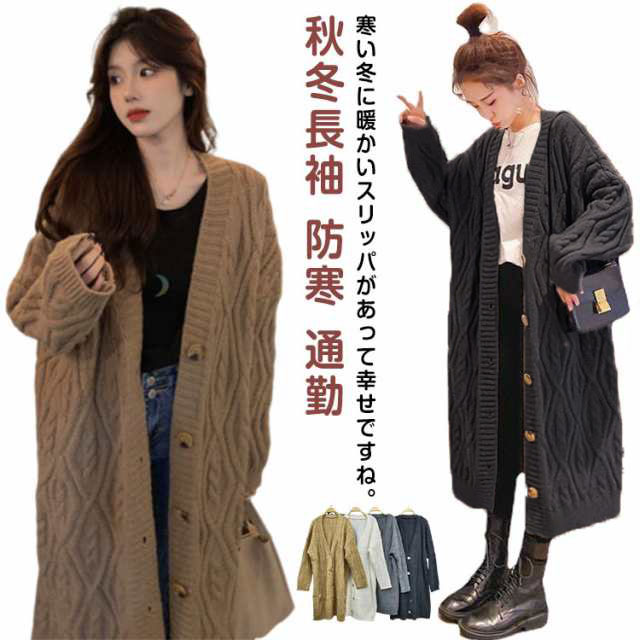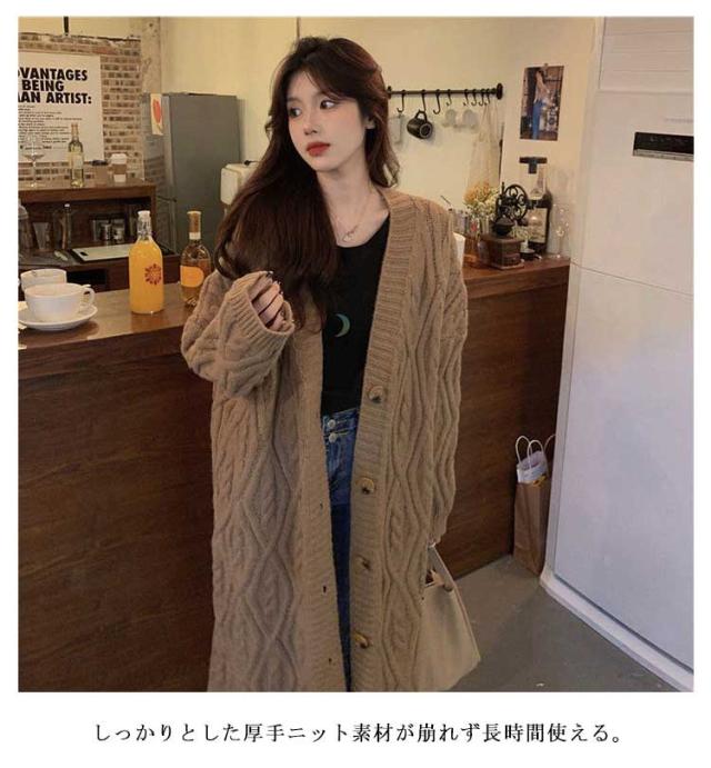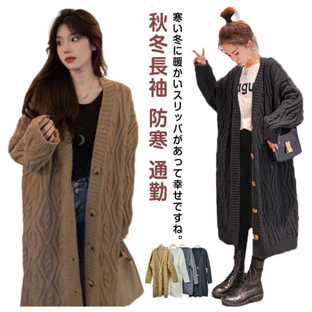 ニット ロングカーディガン 秋冬 レディース 厚手 ケーブル編みカーディガン ロング 通勤 アウター カーディガン コート 羽織り レディース 防寒 ゆったり かわいい 可愛い 長袖