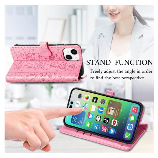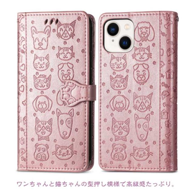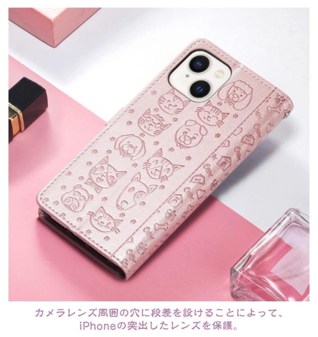 iPhoneケース 型押し 犬 猫 ワンちゃん ネコ iPhone15 ケース 手帳型 スマホケース スリム 手帳型ケース 薄型 カード収納 マグネット内蔵 カード入れ スタンド機能 衝撃保護 PU レザー