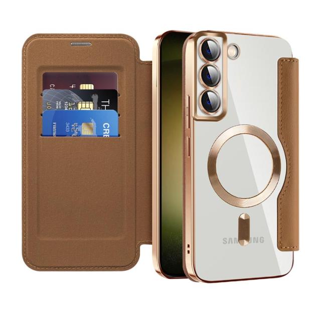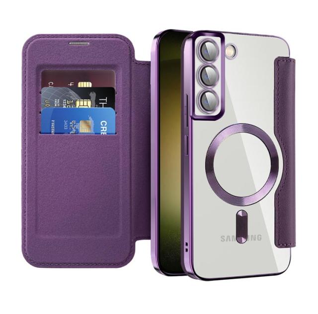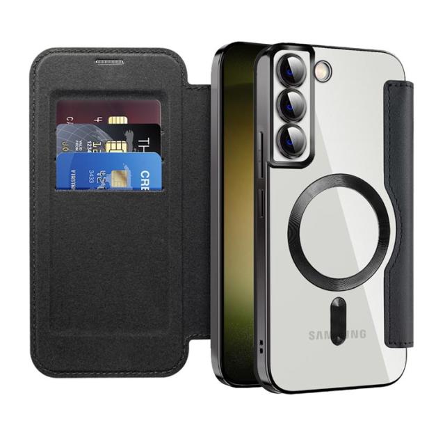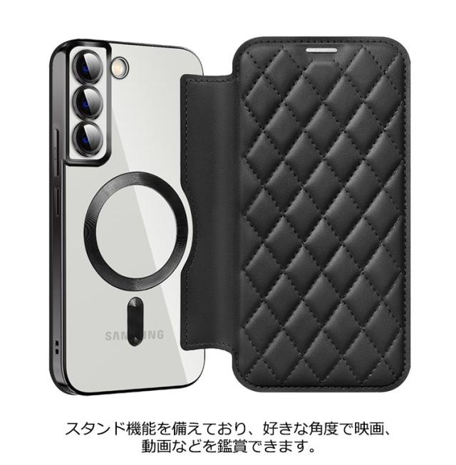 Galaxy S23 ケース Galaxy S23 Ultra ケース 手帳型 カード収納 Magsafe対応 ギャラクシー エス23 カバー クリア メッキ加工 透明 Galaxy S23+ ケース RFID スキミング防止 スタンド ケース レンズフィルム 薄型 MagSafe充電対応 おしゃれ 高級 スマホケース 送料無料