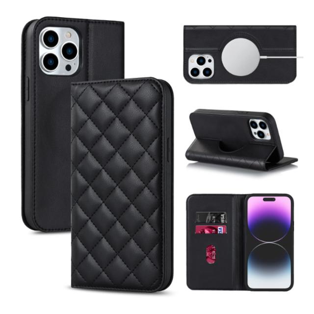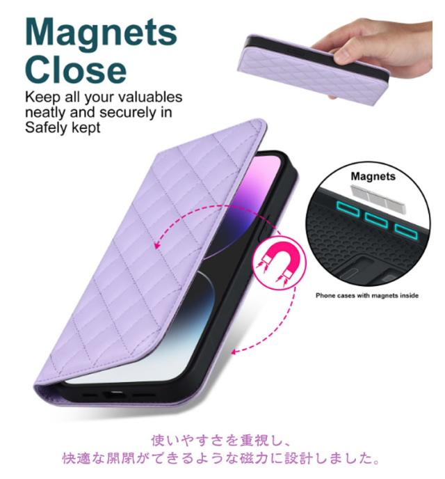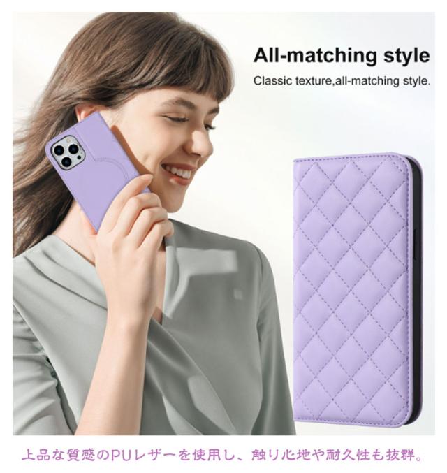 キルティング 手帳型 スマホケース RFID スキミング防止 MagSafe対応 iPhoneケース 手帳型ケース iPhone15 ケース マグセーフ 薄型 スリム マグネット内蔵 カード収納 カード入れ 衝撃保護