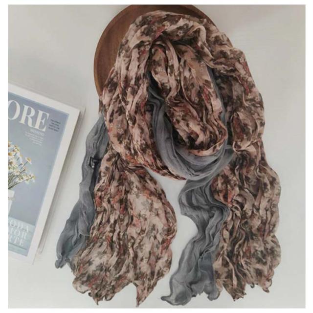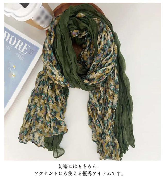 | シワで大人っぽく可愛い小花柄のストール。 軽やかで通気性にも優れたすリネン混素材。 肌へのストレスを感じさせない、生地のなめらかさが魅力。 一枚だけで巻き方のアレンジを楽しめます。 防寒にはもちろん、アクセントにも使える優秀アイテムです。 | |