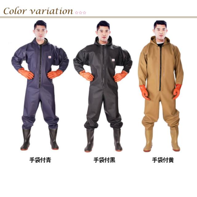 ウェーダー 大きいサイズ ドレス 全身カバー 長靴 防水 胴付長靴 フード付き チェストハイウェダー レディース 長袖 防水つなぎ 田植え 雨天作業 工場作業 釣り 水仕事 除雪 雪かき 潮干狩り 掃除 農作業 漁業 男女兼用 メンズ 手袋付