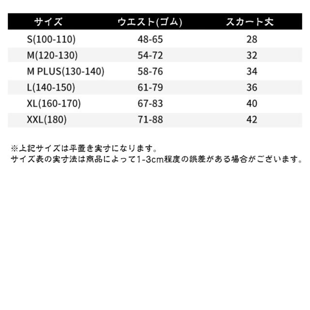 | サイズ | S(100-110cm) M(120-130cm) L(140-150cm) XL(160-170cm) XXL(180cm) |