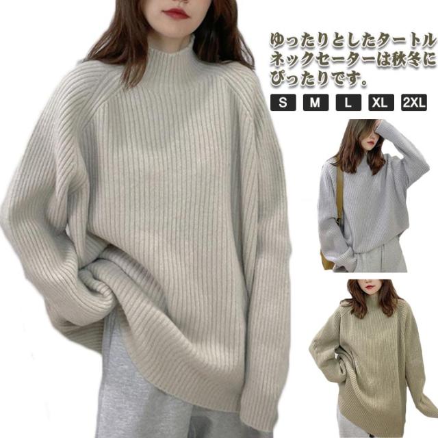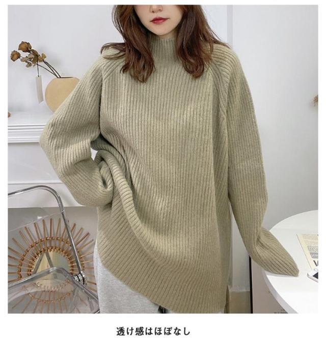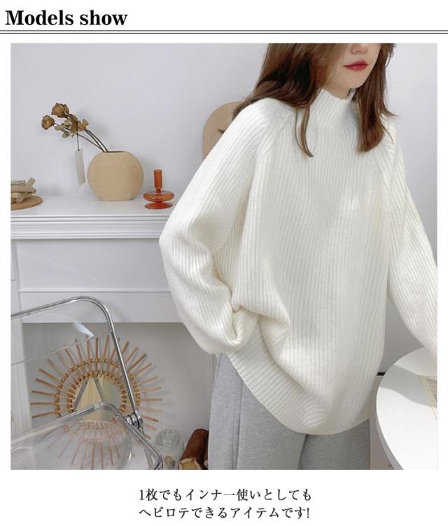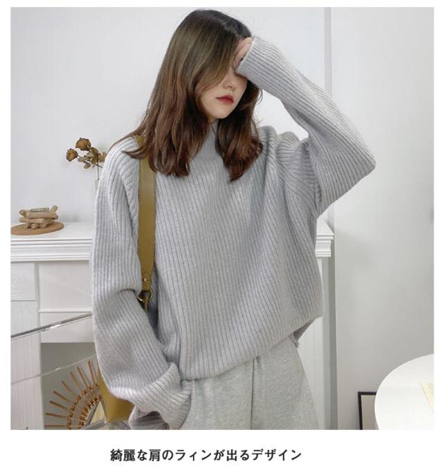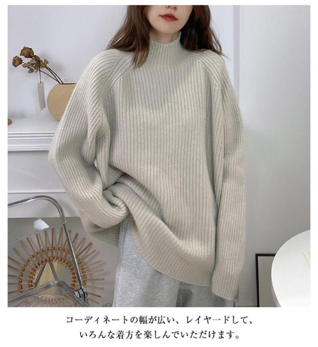 ニット セーター レディース トップス 長袖 ハイネックニット タートルネックセーター ハイネックセーター リブ リブニット ゆったり 体型カバー 重ね着 秋 冬 送料無料