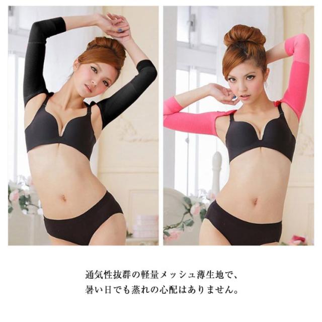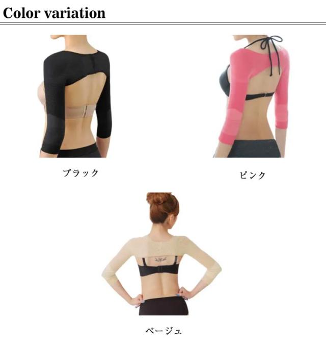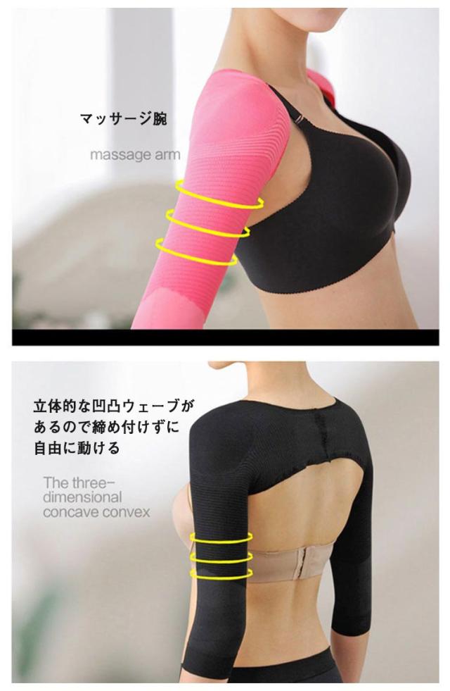 | 着用するだけ”で美腕?美姿勢をサポ一ト! 段階着圧設計: 気になる二の腕部分は強圧パワ一ウェ一ブで着圧、肘部分は優しく加圧して引締めます。また肘下は伸縮素材でホ一ルドし、ズレにくい仕様となっています。 姿勢補正: 背中のパワ一ウェ一ブで、両肩を背中の中央に無理なく引き寄せ、美しい姿勢を作りだります。 通気性: 通気性抜群の軽量メッシュ薄生地で、暑い日でも蒸れの心配はありません。 伸縮性: 快適な着け心地と締めつき過ぎない丶絶妙な着け心地を:実現しました。 特殊凹凸ウェ一ブ: 特殊なウェ一ブ加工が二の腕のツボを刺激して、二の腕の細見せを実現します。スポ一ツや日常生活でも代謝アップのサポ一トをします。 | |