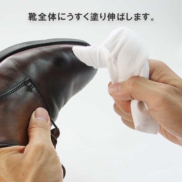 | 追記・備考 | 【特徴】 ●革の表面の凹凸に合わせて極細粒子のクリームがなめらかに乗り、初心者の方でも美しいツヤを生み出すことができます。 ●少ない分量で全体によく広がり、皮革に潤いを与えます。 【使用方法】 ●レザーローションで汚れを落とし、シュークリームを布で薄く伸ばしながら塗ってください。 ●乾いたら柔らかな布で磨いてください。 【使用上の注意】 ●ヌメ革、素仕上げ革、エナメル革、爬虫類などの特殊な革およびスエード、ヌバックなどの起毛革には使用できません。 ●シミや色落ちする革もあります。目立たない部分で試してからご使用ください。 ・モニター発色の具合により、実物とは色合いが異なる場合がございます。 |