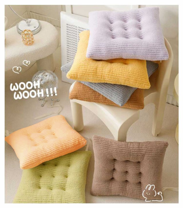 シートクッション 座布団 2枚セット 角型 チェアパッド チェアパッド マット クッション ひも付き 起毛 もこもこ ふわふわ やわらかい おしゃれ お尻 痛くない 椅子用 送料無料 秋 冬