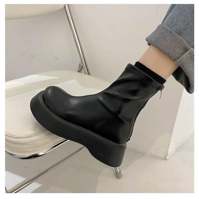 | 選べる丈感 ボリュームのあるソールが存在感を放つ厚底ブーツ。 ソールは厚めにしトレンド感を出しつつも、 大人の女性が履けるようすっきりとしたシルエットに。 フェミニンなスカートとも好相性です♪ | |