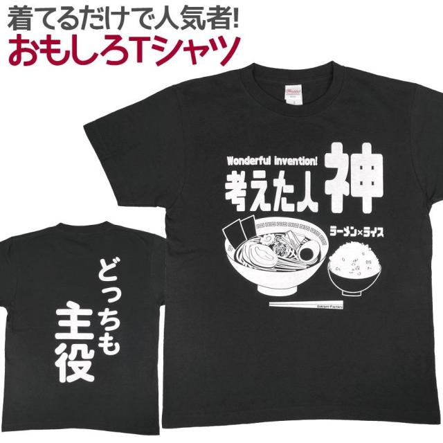 Tシャツ 考えた人神 ラーメン ライス 男女兼用 ユニセックス おもしろTシャツ