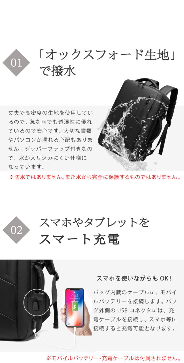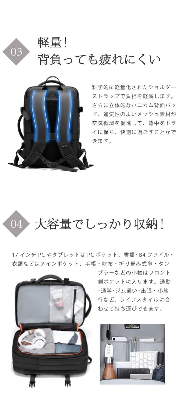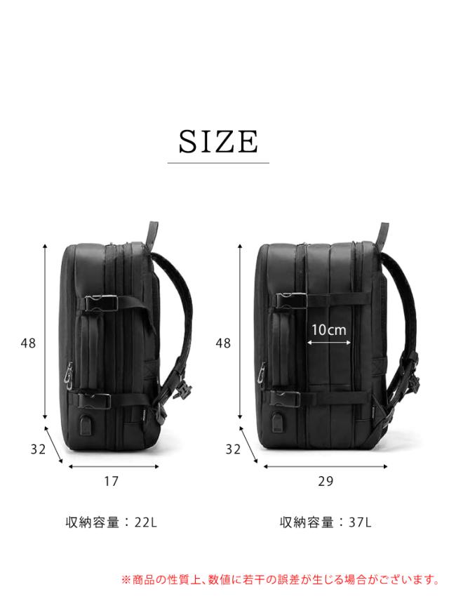 ビジネスバッグ 旅行用 2泊3日 リュック 3way USB充電ポート 拡張後37L PC17インチ収納可 大容量 多機能 一人旅 LCC 機内持ち込み可