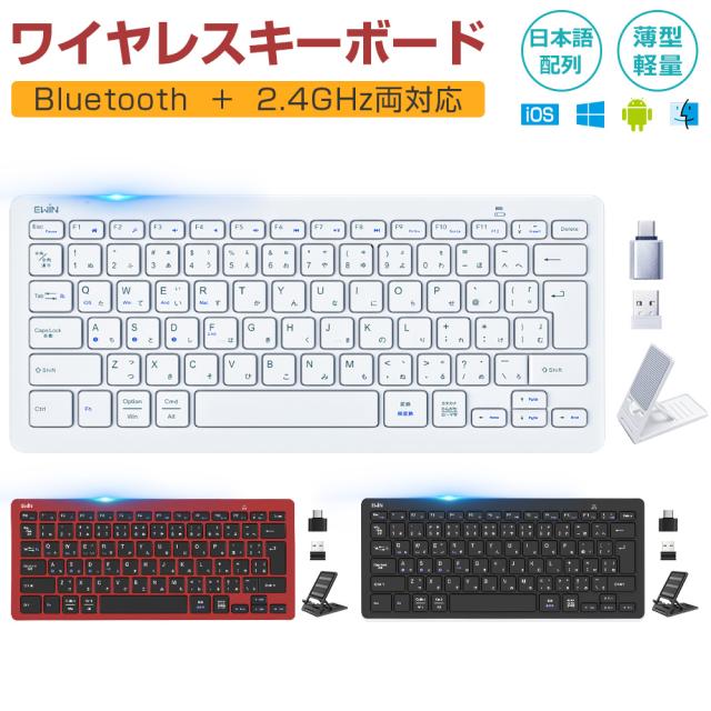 【Bluetooth5.2+2.4GHz両対応】ワイヤレス キーボード JIS日本語配列 Bluetooth キーボード Type-C変換アダプター付 無線 キーボード パソコン タブレット スマホ Windows Mac iOS Android 4つシステム 4台デバイス 軽量 薄型 静音 技適認証済 Ewin 送料無料