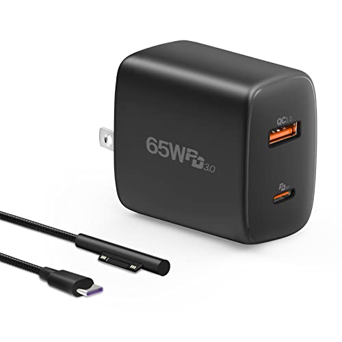 Surface 充電器 65W PD PSE認証 + Surface 充電ケーブル 金属線 折りたたみ式 65W USB-C 充電器 Surface