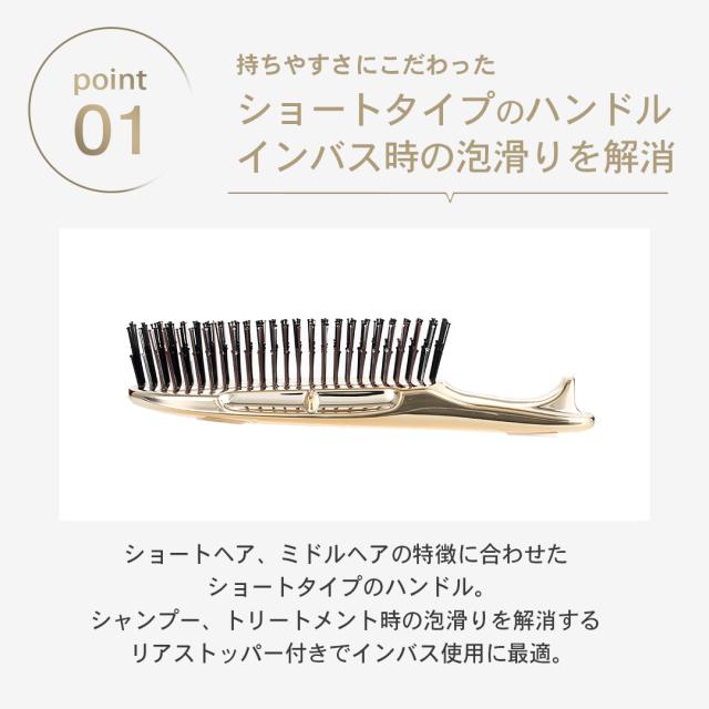 シャンプー時の滑りやすさを解消するストッパーがついたショートタイプ。