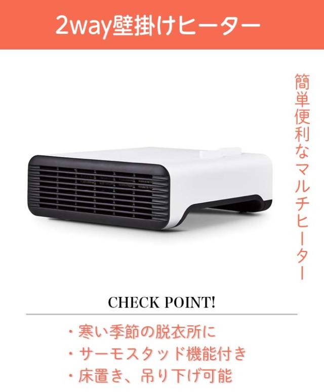 セラミックヒーター 電気ヒーター 2way壁掛けヒーター 床置き 壁掛け 温風機 送風 脱衣所 暖房機 コンパンクト トイレ 洗面所 サーモスタット 小型 省エネ 送料無料