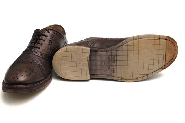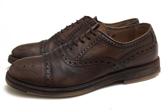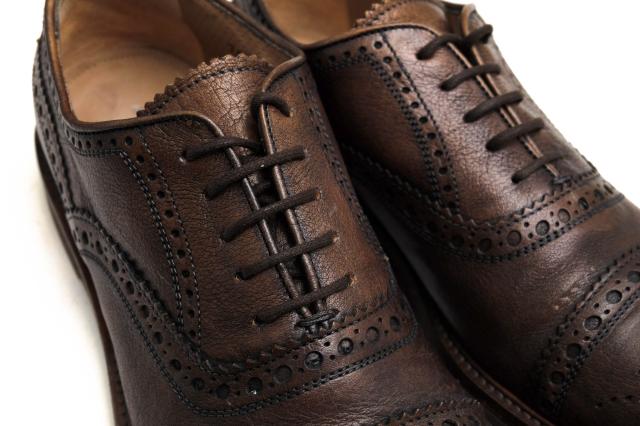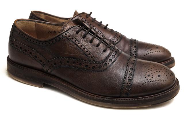 落ち着きあるブラウンカラーに一文字状のブローギングを施したパンチドキャップトウ。イタリア靴らしい深いカラーリングで、気品があります。ビジネスシーンだけでなく、デイリーユースにも良く似合うデザインです。