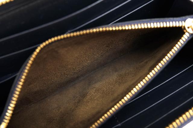 驚くほどに柔らかく傷がつきにくいディアスキンを使用したロングウォレット。シンプルなデザインながら、オリジナルジップや水色のステッチがアクセントになっています。イタリア製でハンドクラフトで仕上げており、高級感があります。