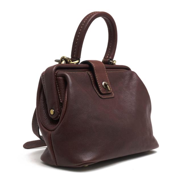 昔のポストマンの鞄をイメージしたレトロデザインのミニショルダー。大きな口金とふっくらした形が特徴で、口金が大きく開き、出し入れがスムーズで手荷物もすっきり収まります。小さなサイズながら存在感があり、装いのアクセントになります。底鋲付きで底面を汚しにくく、サイドのカッティングがフォルムを美しく仕上げます。自然な風合いで丈夫なオイルヌメ革は、柔らかさとアンティークな風合いが魅力です。