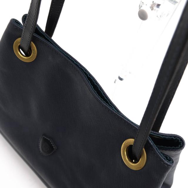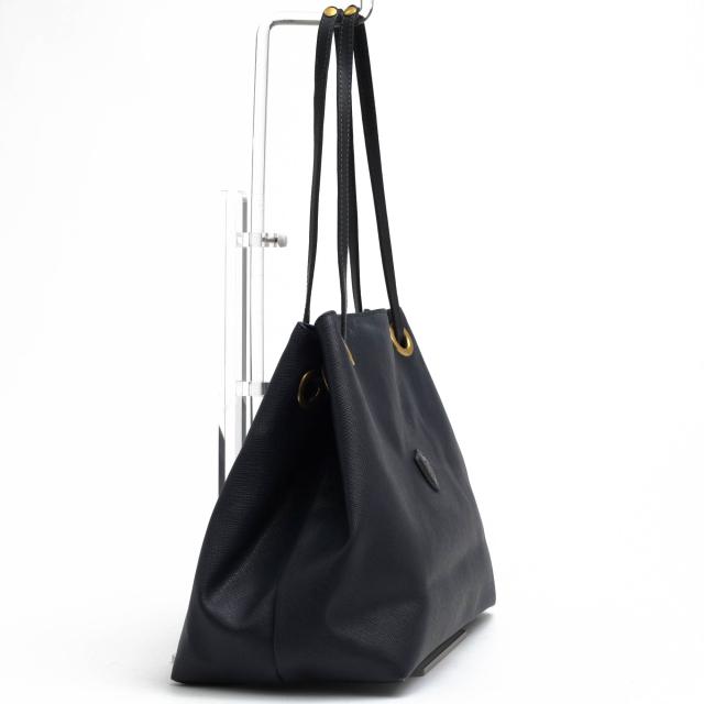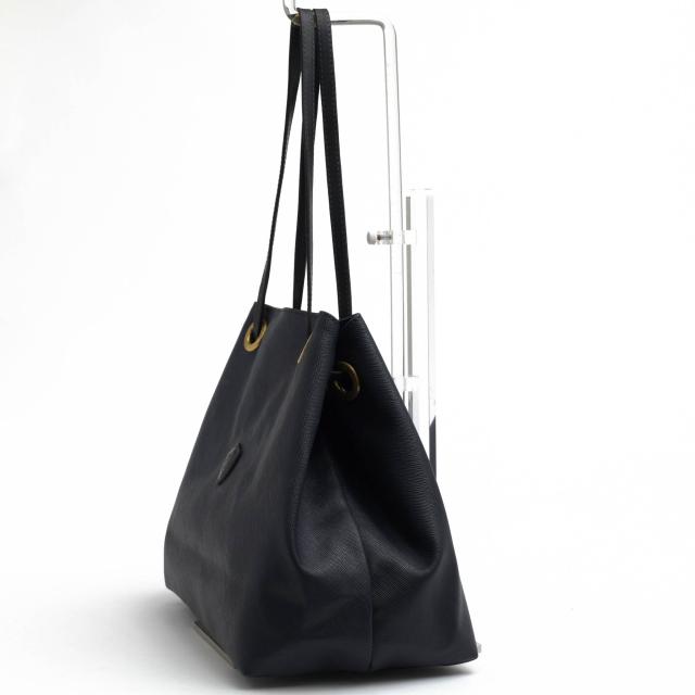 素材にはポリエステルとコットンの混紡生地にPVC加工を施し、さらにサフィアーノの模様を型押しされ、見た目の美しさに耐久性も兼ね備えたハンドバック。トートバッグのような大きく開口に、ハンドバッグようなエレガントさを醸し出します。デイリーユースやフォーマルにも合わせられ、シーンを選ばず活躍してくれます。