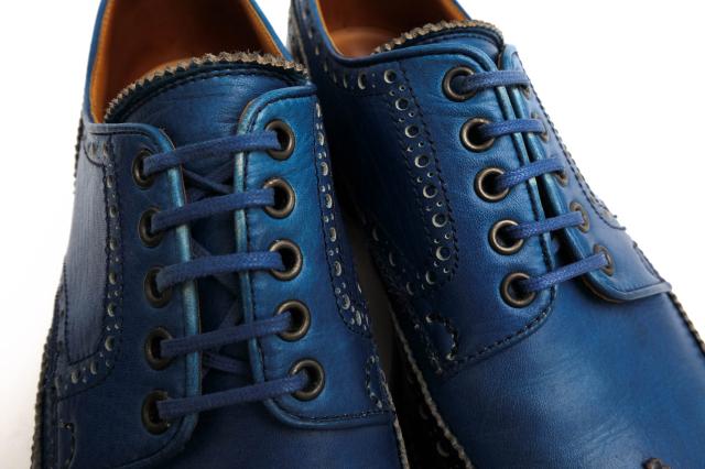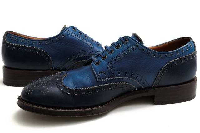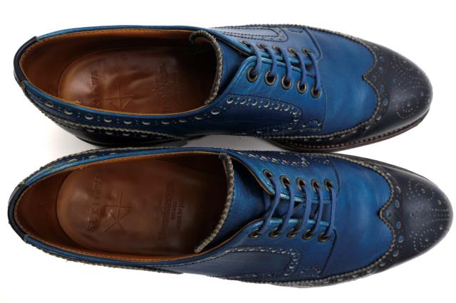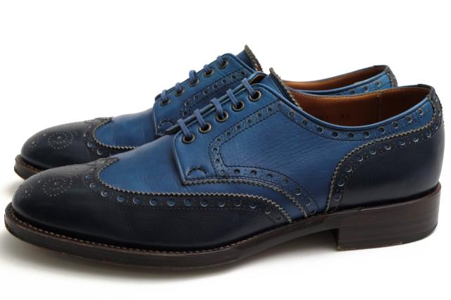 三越伊勢丹のジャパンプレミアムブランドとして生まれたセキトワ(SEKItoWA)とユニオンインペリアルのコラボによるウイングチップシューズ。阿波藍を使用したスクモレザーを採用。スクモレザーは徳島県の阿波藍を使用し、京都で天然灰汁建本藍染めされた天然染革です。日本の靴づくりと藍独特の美しい色合いを融合させました。職人の技が際立つ一足であり、グッドイヤーウェルト製法による丁寧な仕上げも魅力です。