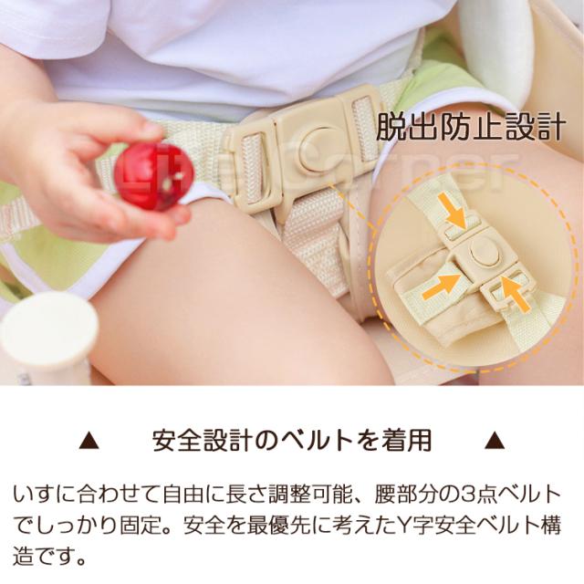 3点構造の安全ベルトが赤ちゃんをしっかり守ります。