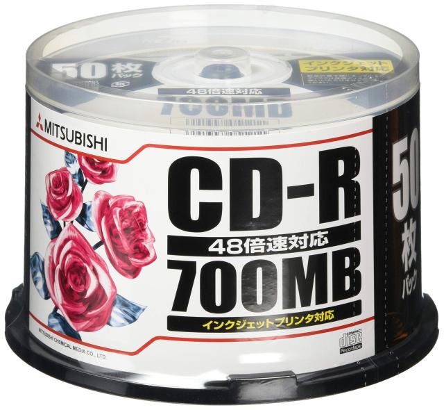 三菱化学メディア CD-R 700MB 4~48倍速対応 50枚スピンドルケース入印刷可能ホワイトレーベル SR80PP50