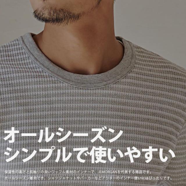 ロンT メンズ ワッフル サーマル 長袖Tシャツ プルオーバー 定番 レイヤード 重ね着 無地 シンプル クルーネック 長袖 Tシャツ ルームウェア 部屋着 JEMORGAN LONG JOHNS 白T 白Tシャツ ユニセックス 男性 男 服 秋 冬 秋冬 秋服 ファッション [JC055-52S]
