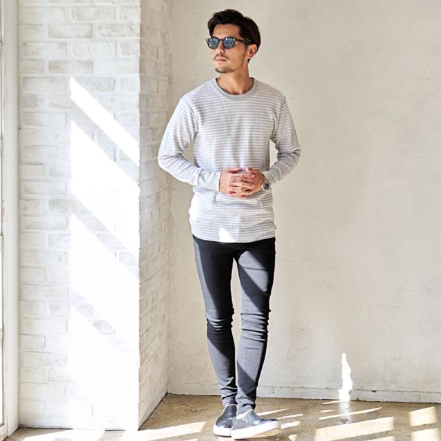 長袖のクルーネックに新しくボーダー柄が加わりました。