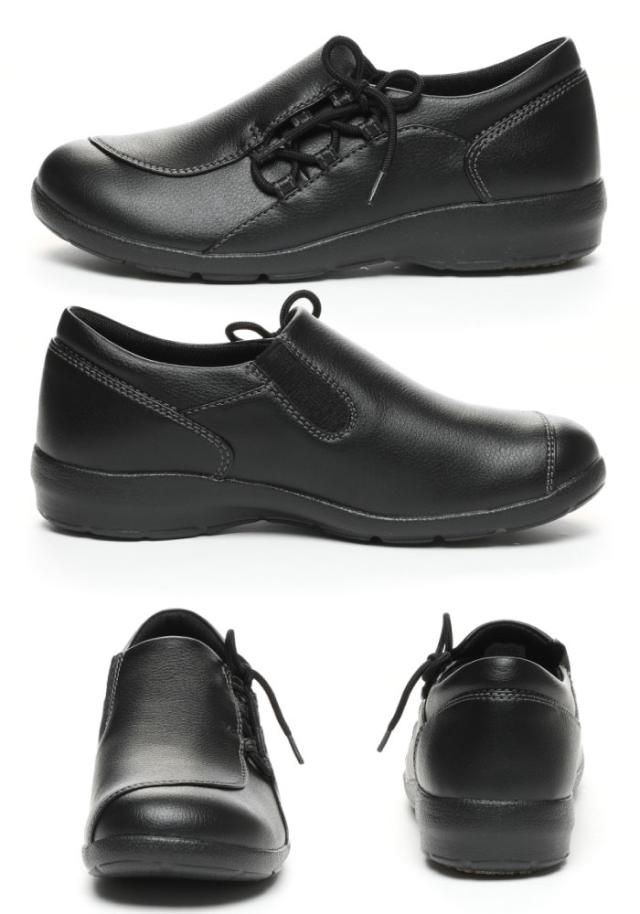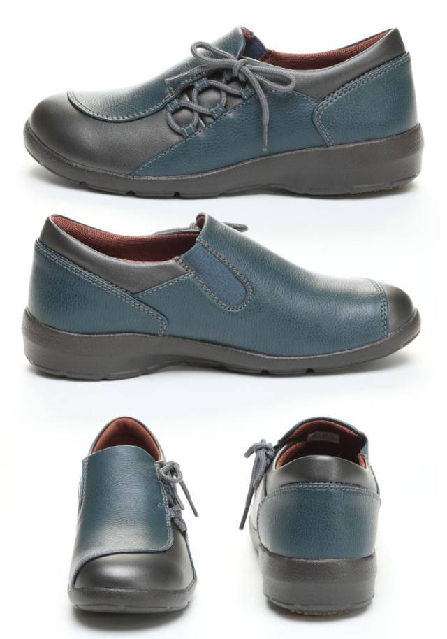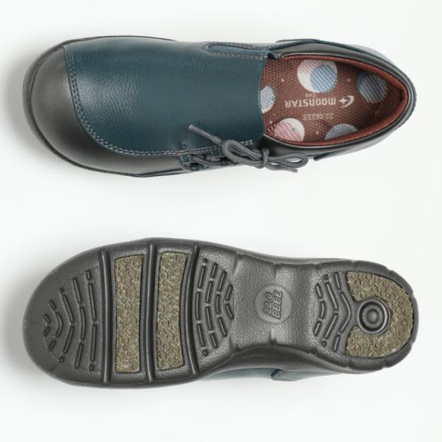 アクティブなミセスの足元をサポートする「ムーンスターイブ」のコンフォートシューズです。外反母趾に考慮したつま先形状やアーチをサポートする機能を搭載した「外反母趾にうれしい靴」シリーズです。ヒールの高さは3.0cmで、重量は23.0cmで片足約165gの軽量設計です。