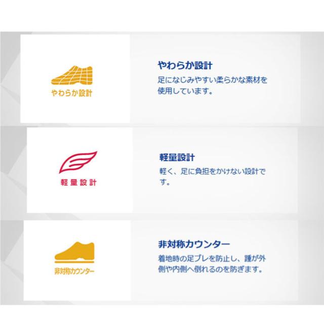 【非対称カウンター】外側よりも内側が長いカウンターを搭載することで踵が内側に倒れるのを防ぎます。