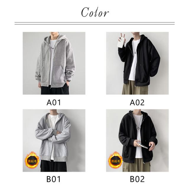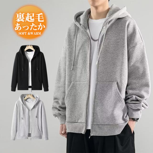 パーカー メンズ 裏起毛 長袖 スウェット フード付き ジップアップ 厚手 無地 春秋冬 トレーナー アウター 着痩せ 防寒 暖か 秋 新作