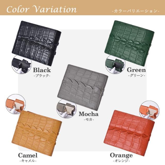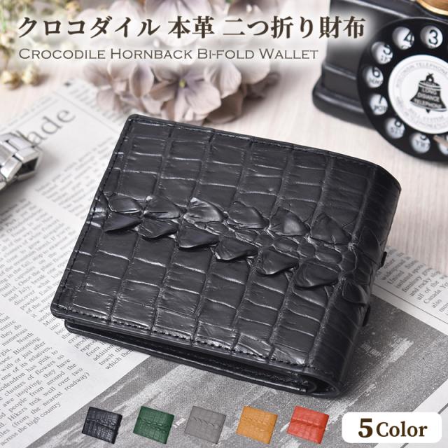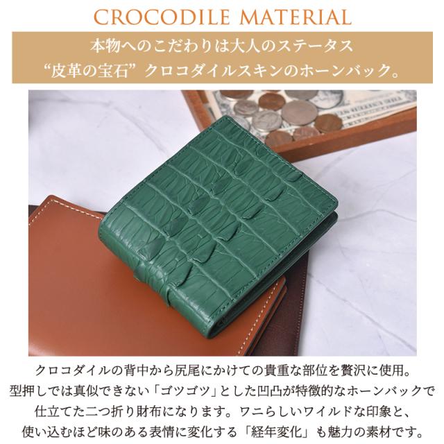 二つ折り財布 本革 メンズ レディース クロコダイル ホーンバック レザー ワニ革 折りたたみ 財布 背ワニ テール ブラック グリーン 折り財布 軽い 小さめ スリム コンパクト 軽量 小銭入れ 収納 鰐革 男性 人気 開運 一粒万倍日 金運 風水 ギフト 送料無料
