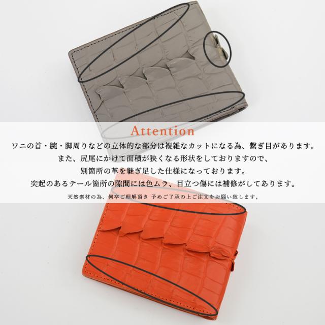 | 特徴 | 『本物へのこだわりは大人のステータス “皮革の宝石”クロコダイルスキンのホーンバック。』 クロコダイルの背中から尻尾にかけての貴重な部位を贅沢に使用。 型押しでは真似できない、「ゴツゴツ」とした凹凸が特徴的なクロコダイルホーンバックで仕立てた二つ折り財布になります。 ワニらしいワイルドな印象と、使い込むほど味のある表情に変化する「経年変化」も魅力の素材です。 『Hornback』 鰐の背中側と一概に言っても、頭から尻尾にかけて表情は様々。 背面・テール部位などと呼び分けされ、腑模様の大きさや突起の出方はそれぞれ異なります。 世界に一つだけ、どの部位が届くかはお楽しみ。 『Attention』 ワニの首・腕・脚周りなどの立体的な部分は複雑なカットになる為、繋ぎ目があります。 また、尻尾にかけて面積が狭くなる形状をしておりますので、別箇所の革を継ぎ足した仕様になっております。 突起のあるテール箇所の隙間には色ムラ、目立つ傷には補修がしてあります。 内側は紙幣と小銭、カード類をシンプルに収納できるルーム構造。 滑らかで触り心地の良いスムースレザー(本革)で仕立てた仕様なので、 お支払いの際にお財布を開いても高級感を損ないません。 小銭入れは縦型で約5〜6cmのマチを採用して大きく開きやすい仕様に。 紙幣ポケットは2層に分かれていて領収書と紙幣を別々に収納可能です。 カード入れと小銭入れの裏側にはそれぞれフリーポケットがあります。 さらに小銭入れ上部の裏側には、便利なカードポケットが付いてます。 |