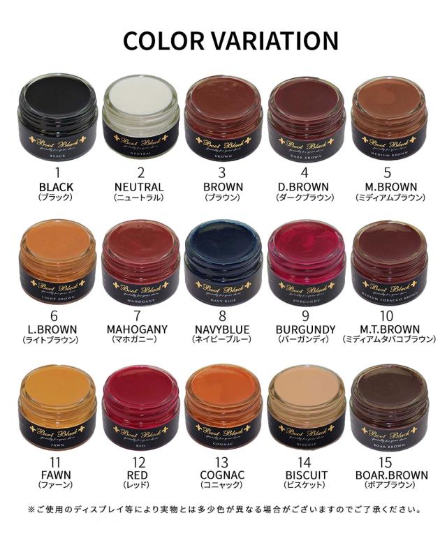 ご自身の革靴に合った色のクリームを選んでいただけるカラーバリエーションです。