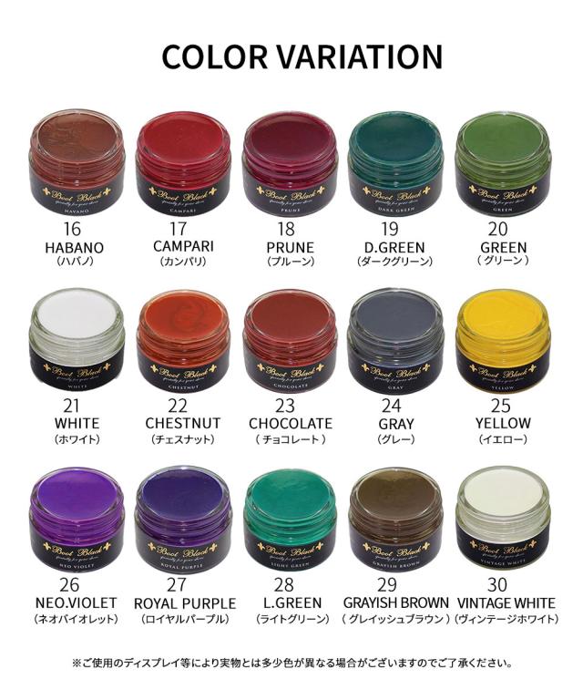 ご自身の革靴に合った色のクリームを選んでいただけるカラーバリエーションです。