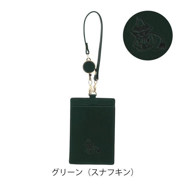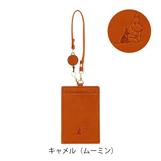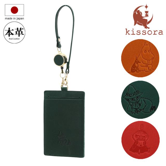 【レビュー投稿で+5%還元】キソラ ムーミン パスケース 本革 素押し レディースKIMN-006 kissora MOOMIN | リール付き 型押し エンボス 牛革 日本製 スナフキン 縦型