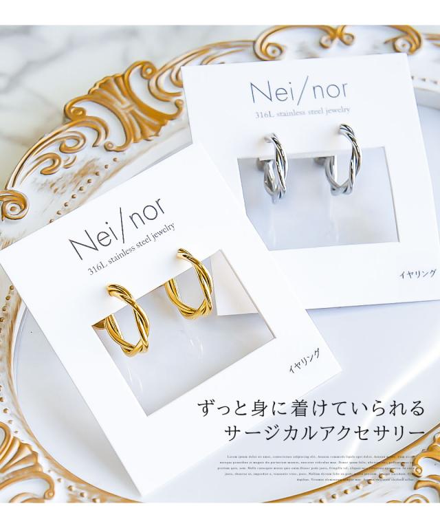 Nei/nor イヤリング お肌に優しい つけっぱなしok サージカルステンレス 316L ジェンダーレス ファッション アクセサリー 錆に強い 変色しにくい ゴールド シルバー ネイナー NnER-0009