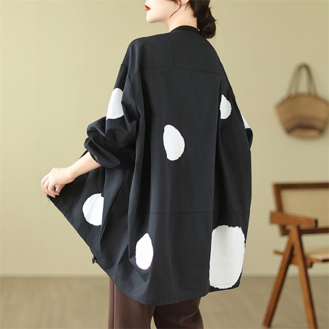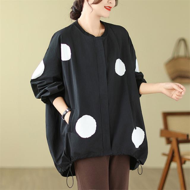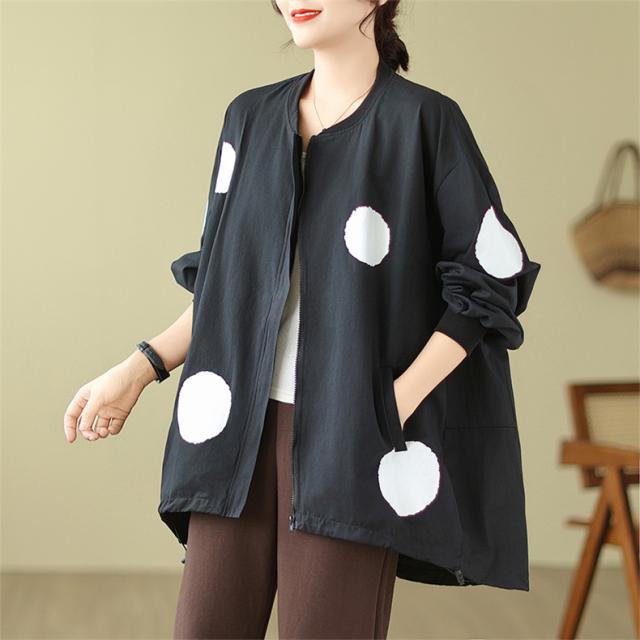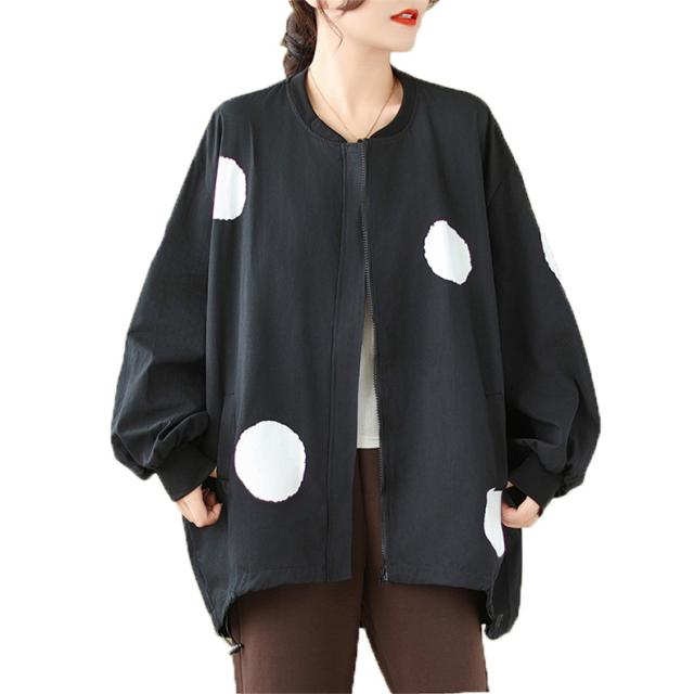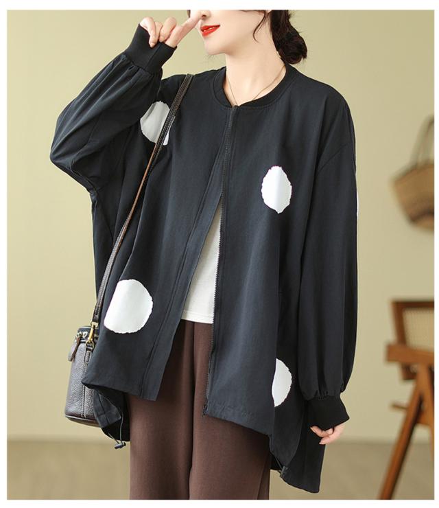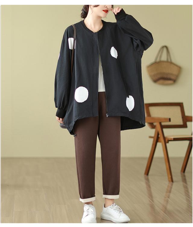 ブルゾン あったかい レディース 秋ジャケット ジャンパー ドット柄 羽織り トップス ロング丈 着やすさ抜群 大きいサイズ 大人のリラックススタイル