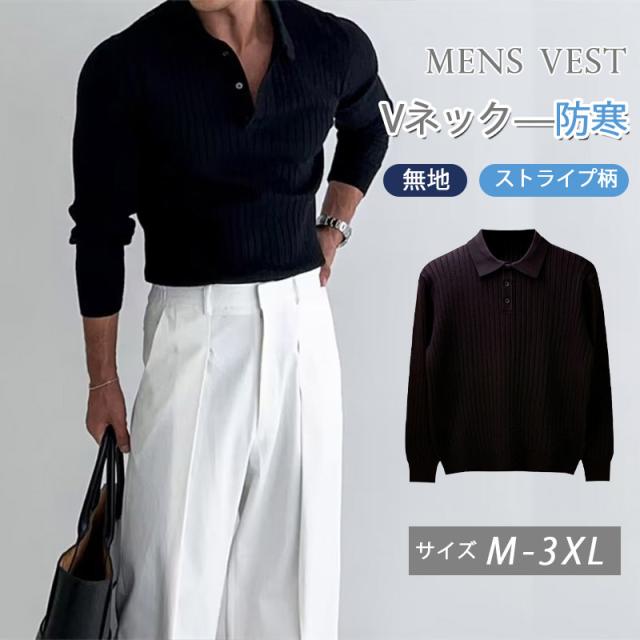 ベスト メンズ ニットポロシャツ ニットベスト セーター プルオーバー 無地 Vネック チョッキ カジュアル アウトドア 部屋着 おしゃれ