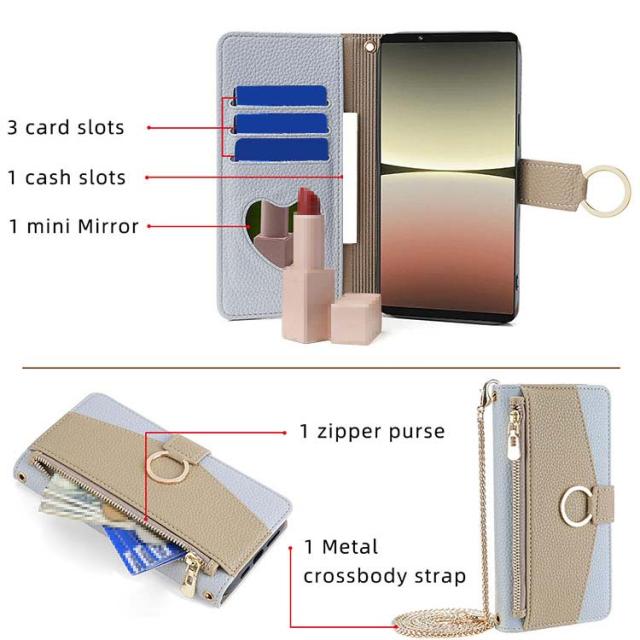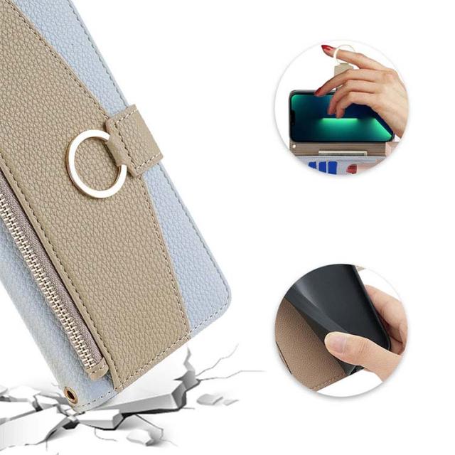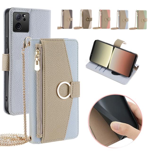 Xiaomi 13T ケース 13T Pro スマホショルダー カバー 手帳型 PUレザー 紐 ファスナー付きポケット リング付き ミラー付き カード収納 落下防止 ショルダー 肩掛けベルト付き エレガント 小米 シャオミ 13T/13T プロ おすすめ おしゃれ スマートフォン/スマホケース/カバー