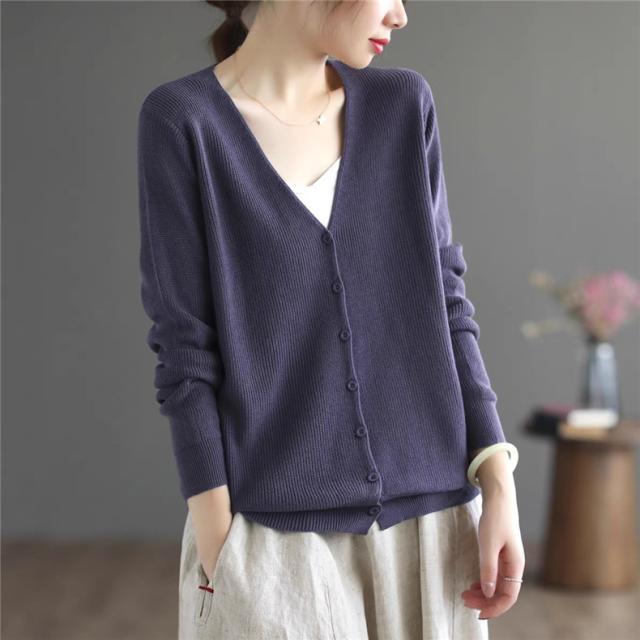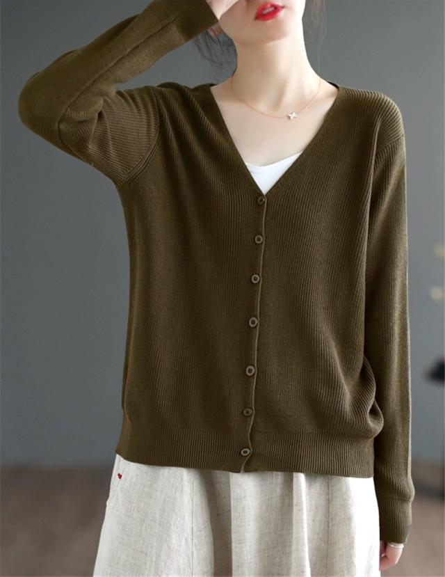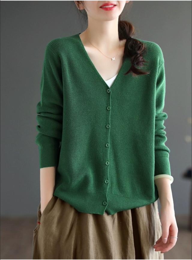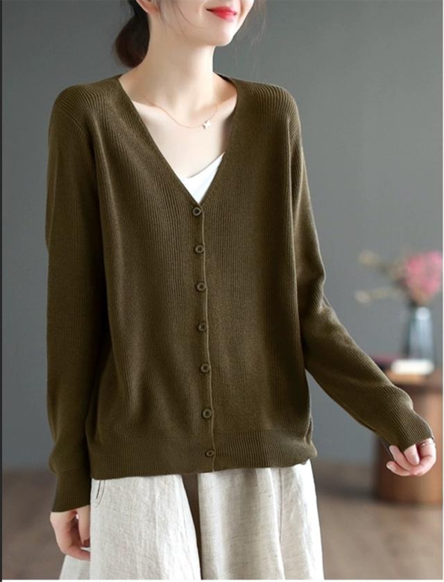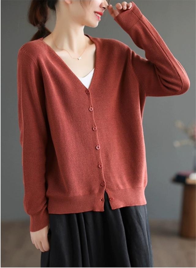 カーディガン レディース 秋冬 長袖 羽織り Vネック 薄手 オーディナリー コットンニット シンプルであたたかな着心地 上品 オフィスコーデにも映える