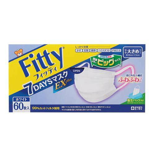 玉川衛材 フィッティ 7DAYSマスクEXプラス 60枚入 ホワイト やや大きめサイズ