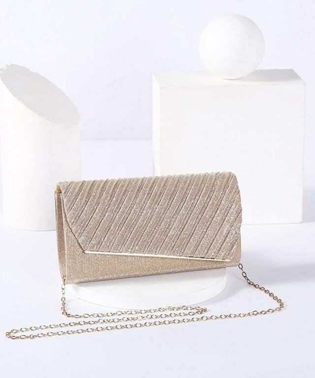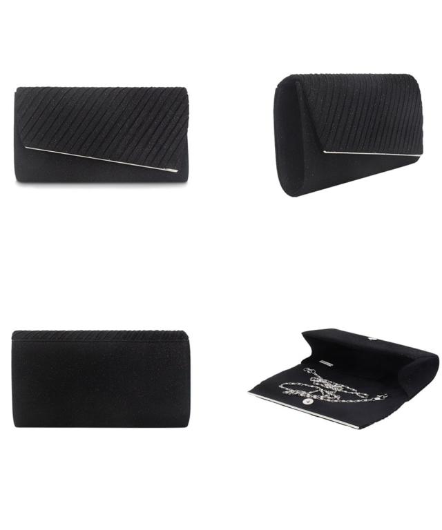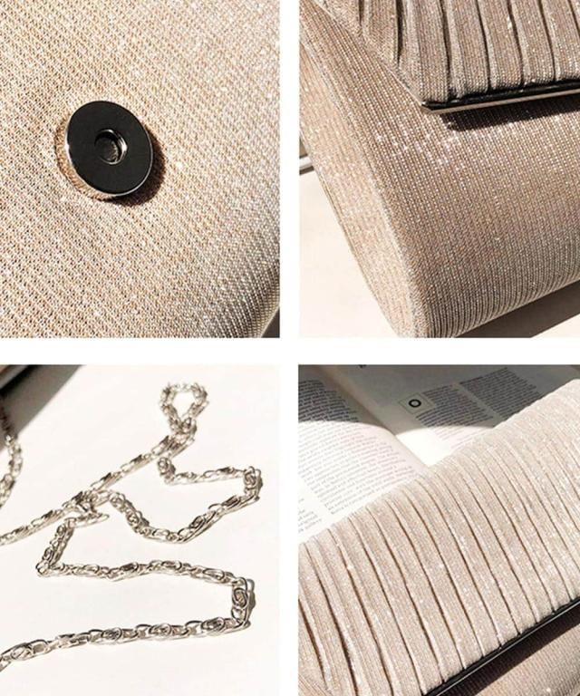 プリーツ加工をほどこしたサテン生地が上品なキラキラパーティーバッグ