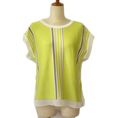【中古】コーザノストラ COSA-NOSTRA カットソー ニット チュール ストライプ 42 緑 グリーン レディース