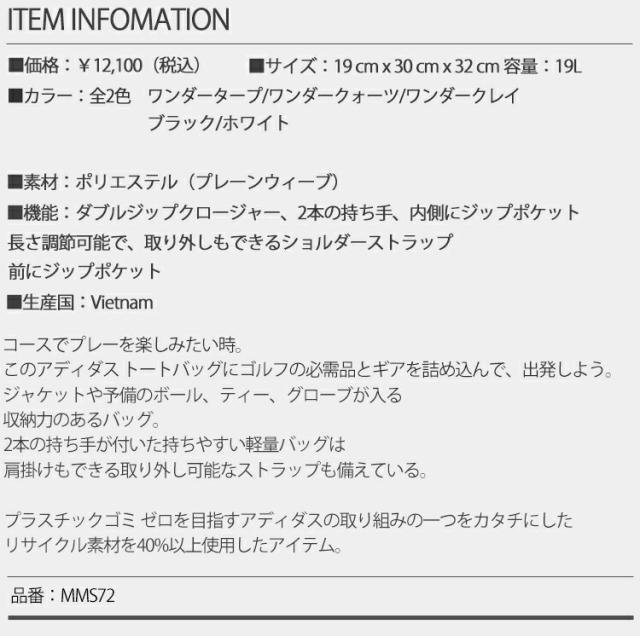 アディダス ゴルフ 軽量 カラーブロック トートバッグ レディース ゴルフ アクセサリー「Adidas MMS72」 2023年秋冬モデル日本正規品