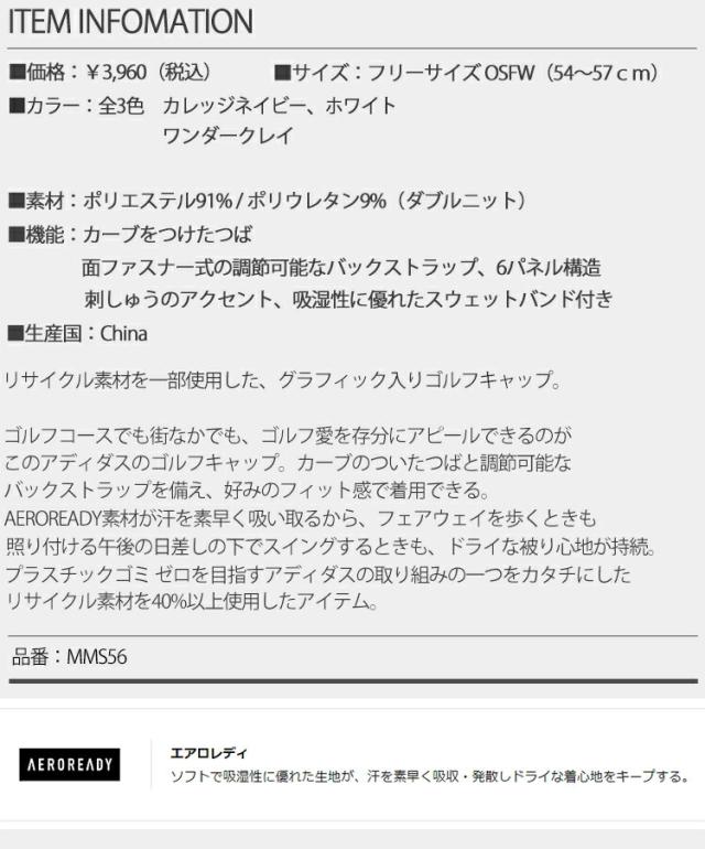 アディダス ゴルフ パームツリーモチーフ キャップ レディース ゴルフ ウェア「Adidas MMS73」 2023年秋冬モデル日本正規品