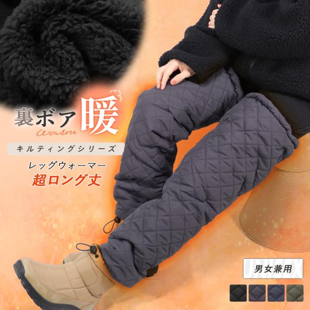 レッグウォーマー 超ロング丈 裏ボア 調節ゴム付き キルティング 裏起毛 防寒対策 撥水 静電気防止 *00