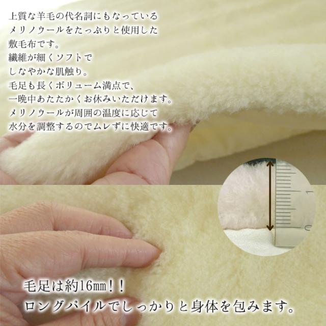 ふっくらメリノウール敷毛布(敷きパッド)140×205cm ダブルサイズ