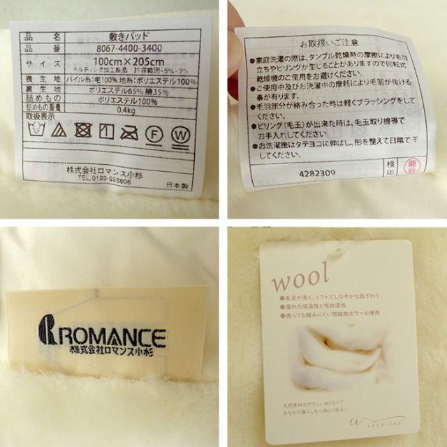 日本製 メリノウール わた入り ボリューム 敷きパッド ダブルサイズ 140×205cm 敷き毛布 ロングパイル16mm 8067-4404