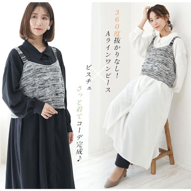 すっきり可愛いAラインワンピース×ビスチェの2点SET